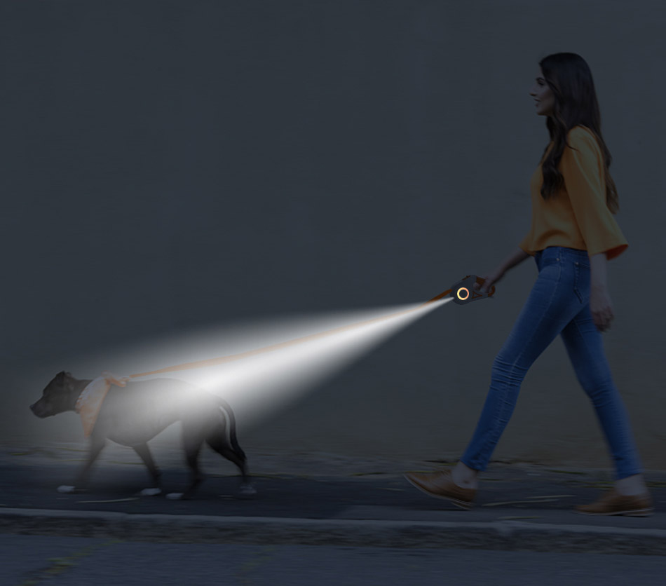 - With Rojeco you will increase your visibility on the road. The automatic leash is equipped with a built-in LED flashlight, so you won't miss anything important and stay alert in case of emergency.
